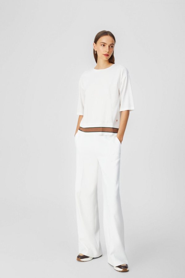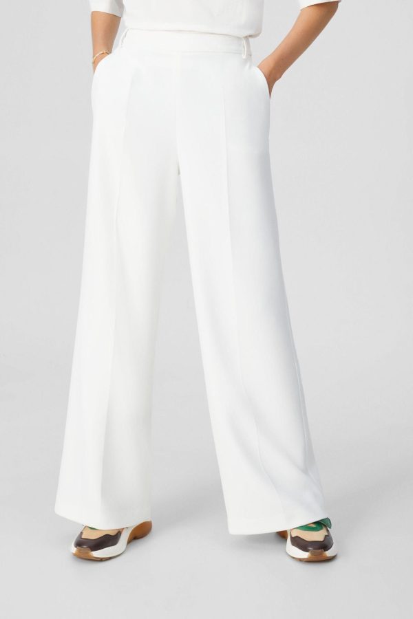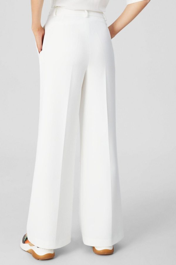 Fluid wide leg palazzo trousers with side pockets. Model is 180 cm | 5′ 10″ and is wearing a size 38.
