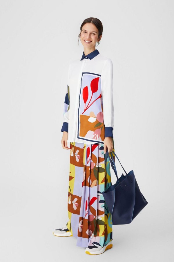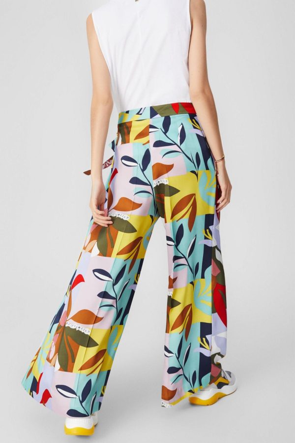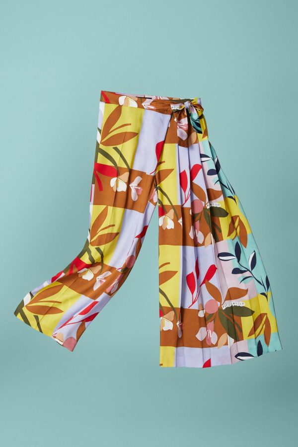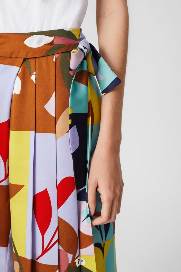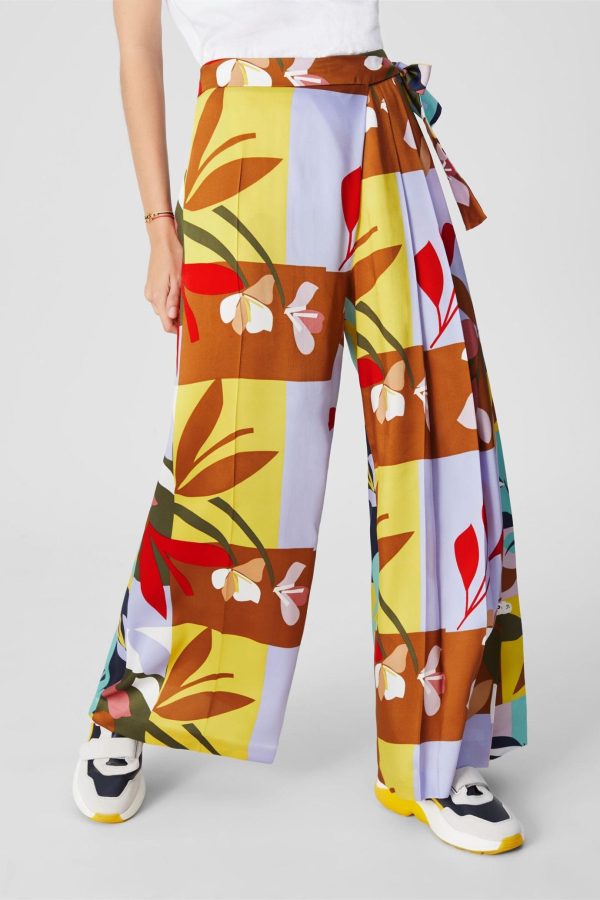 Wide-leg trousers in printed twill with a pleated side and tie fastening. Model is 174 cm | 5′ 8″ and is wearing a size Medium.